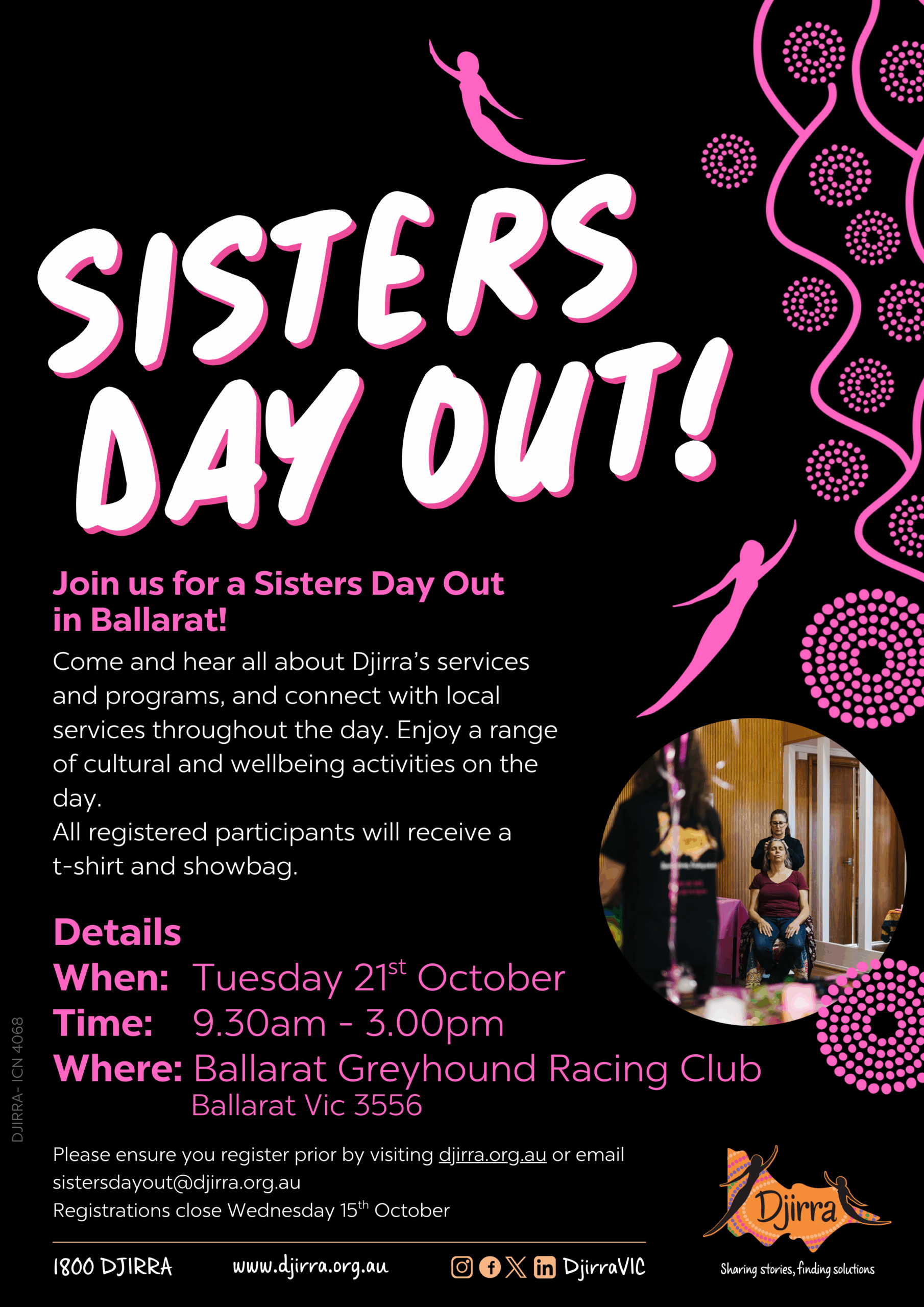 Sisters Day Out® is Djirra’s well-established wellbeing workshop that offers a space for Aboriginal women to come together to support each other, enjoy a little pampering, get information about rights and options, and engage with support services available. These workshops are held regularly in welcoming community settings, where all Aboriginal women are invited to join.