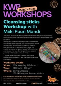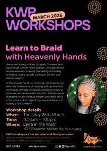 To avoid missing out, please make sure to register by calling the Koori Women’s Place on 9244 3333 or kwp@djirra.org.au